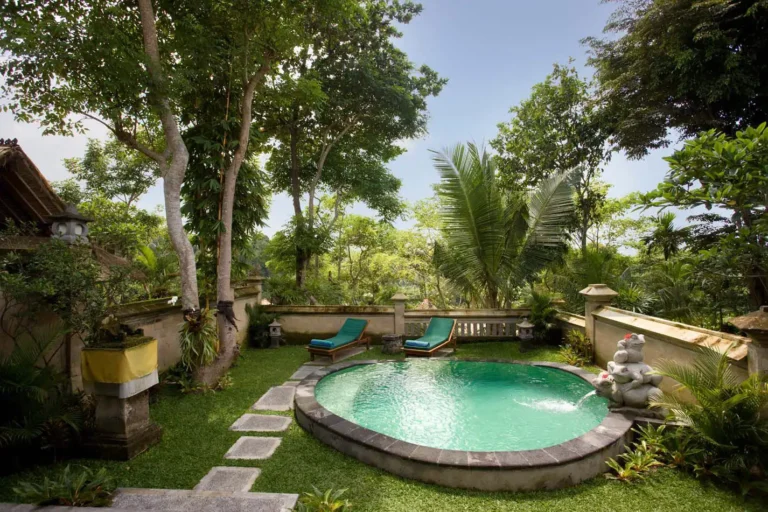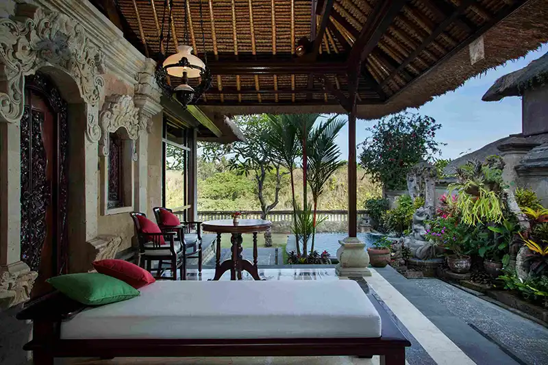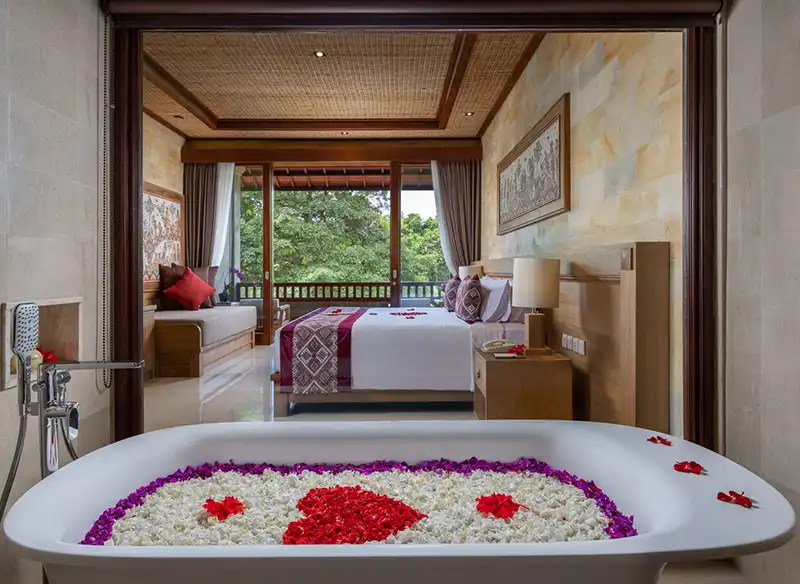 The Pool Villas offer ultimate privacy, featuring spacious rooms with traditional Balinese décor. As such, they have large open-air living areas, and private plunge pools with stunning views of the jungle or Ayung River. However, for those seeking a more intimate experience, the Superior Villas are perfect. That's because they provide comfortable living spaces with private terraces. Naturally, they are perfect for soaking in the serene beauty of the resort’s lush surroundings.