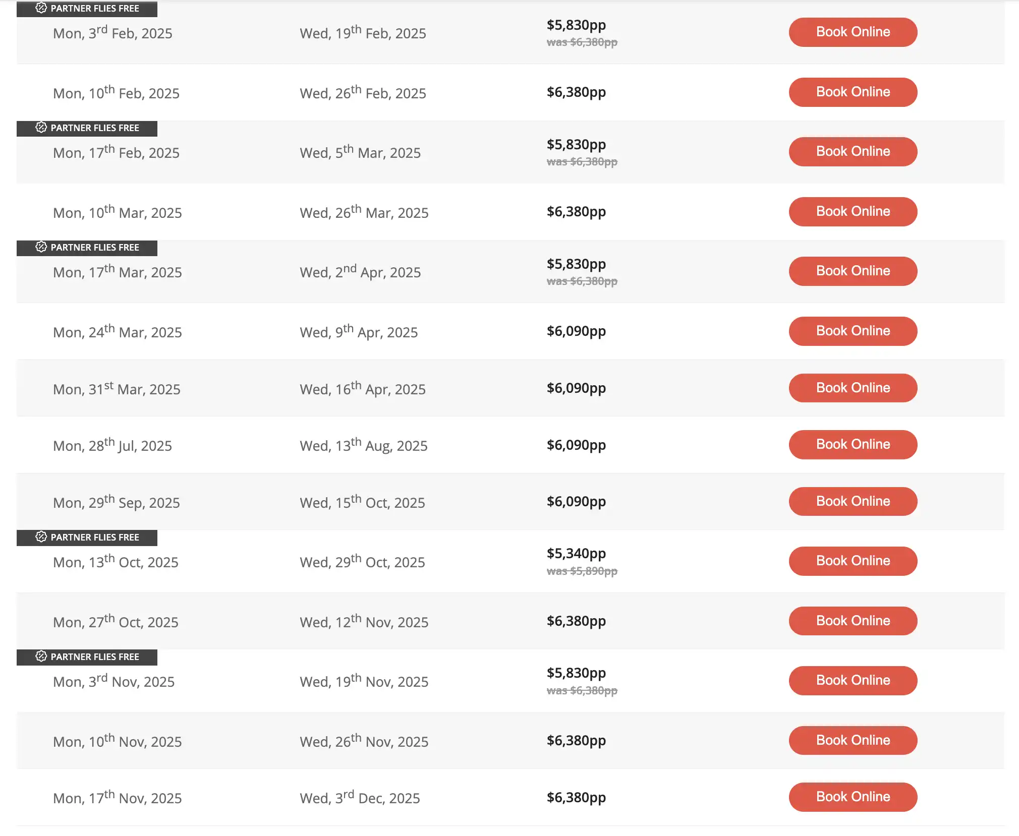 Prices quoted above are in AUD per person, twin share and will vary according to the season and time of year.